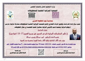 بمناسبة يوم المخطوط العربي أقامت الجمعية العراقية العلمية للمخطوطات بالتعاون مع جامعة ماردين ارتوقلو التركية وجمعية قديم اكاديمي التركية محاضرة علمية تخصصية في مجال المخطوطات