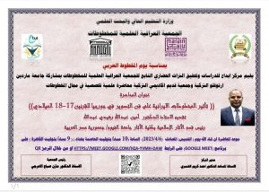 بمناسبة يوم المخطوط العربي تقيم الجمعية العراقية العلمية للمخطوطات بالتعاون مع جامعة ماردين ارتوقلو التركية وجمعية قديم اكاديمي التركية محاضرة علمية تخصصية في مجال المخطوطات